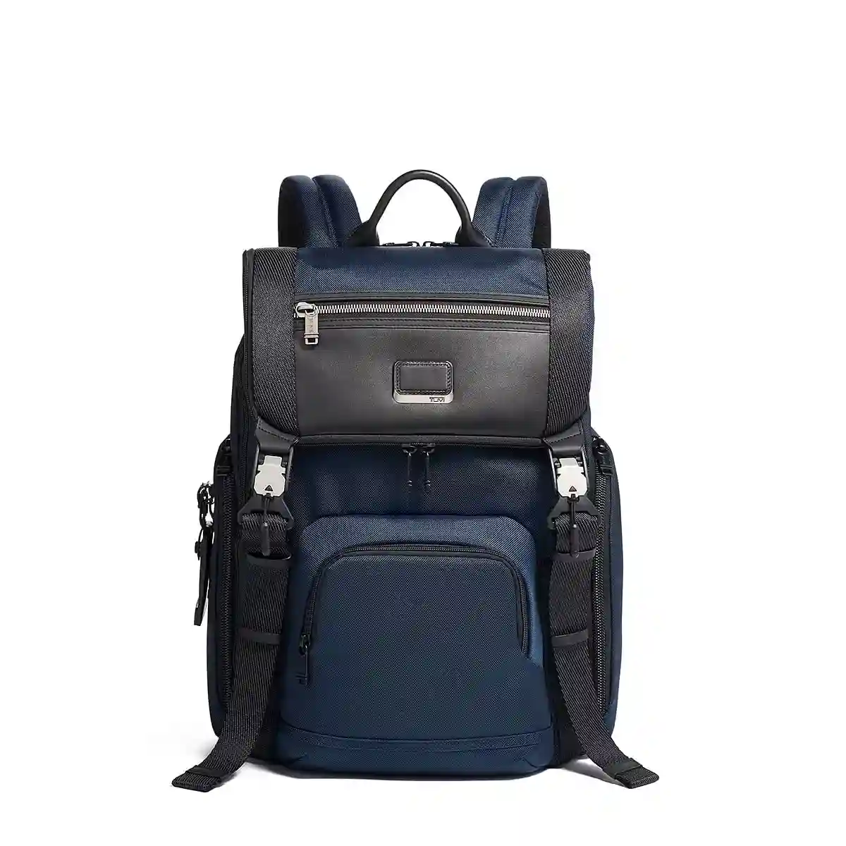 - Built to carry daily essentials or to travel the world, our Lark backpack offers resilience and durability. Magnetic clips keep the flap secure, and an L-zip pocket lets you open it wide to pack with ease. ItĆ¢âā‰āĀ¢s outfitted with handy pockets for your laptop, tablet, phone, and water bottle to make sure you keep track of it all. Alpha Bravo brings you rugged yet refined pieces that will take you from the office to the outdoors and beyond. Select styles come outfitted with a colorful TUMI Accents Kit (luggage tag, monogram patch, handle wrap and zipper pull ties) for an additional cost.